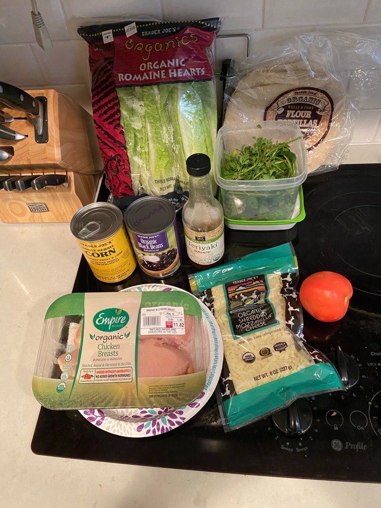 - Place the chicken, corn, lettuce, and black beans, into a large mixing bowl. Add the Cilantro Lime Peanut Vinaigrette and toss well.