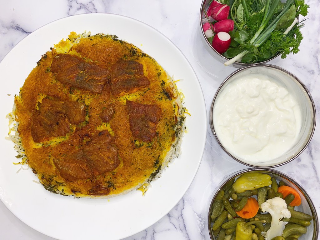 You’ve heard of tahdig, you’ve heard of potato tahdig. But have you heard of SALMON tahdig?? One of my moms specialities, this Sabzi polo and salmon tahdig combination is delicious! Very easy to make, healthy, tasty and is made all in one pot!